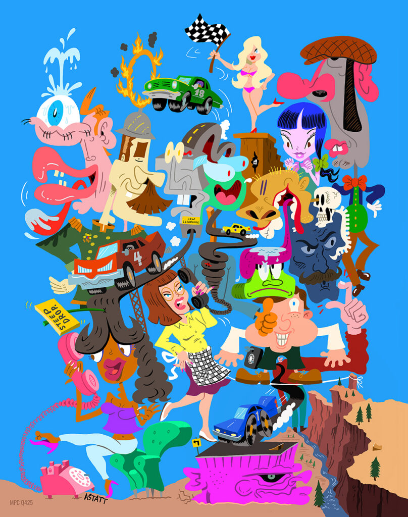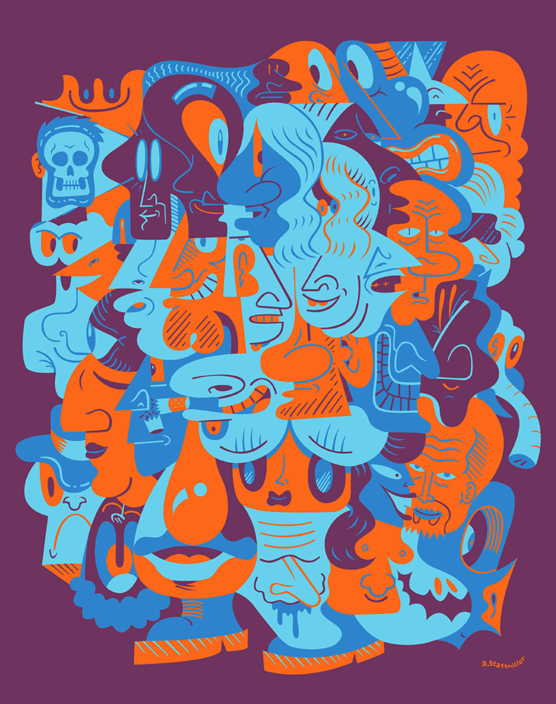 Andy Stattmiller is an Illustrator living in San Francisco, California. Born in Columbus Ohio, Andy has been drawing since a kid in the 80’s. He graduated from Columbus College of Art and Design with a BFA in Illustration. His work is inspired by old cartoons, comic books, pop culture, album covers, skateboards and Monty Python animations. He has over two decades working with clients both large and small and has shown work in galleries nationwide.