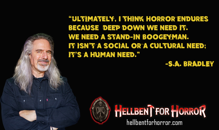 S.A. Bradley hosts the 5-time Rondo Award-nominated podcast, “Hellbent for Horror,” which explores all things horror across books, film, comics, and music. Director Guillermo Del Toro described the podcast as “well-researched, articulate, and entirely absorbing.” Bradley is the author of the Rondo-nominated book Screaming for Pleasure: How Horror Makes You Happy and Healthy. He is currently working on a follow-up book. Bradley’s short stories are published in the anthologies Shattered and Splintered, Shadows in the Stacks, and Punk Goes Horror. He is also working on his own collection of short horror stories.